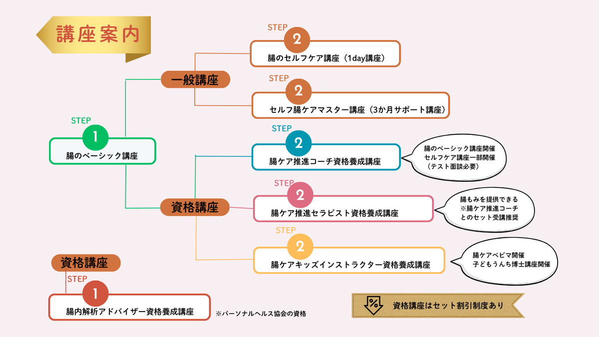 ※整腸ケアコーチ&整腸ケアセラピストのセット受講は10%OFFです